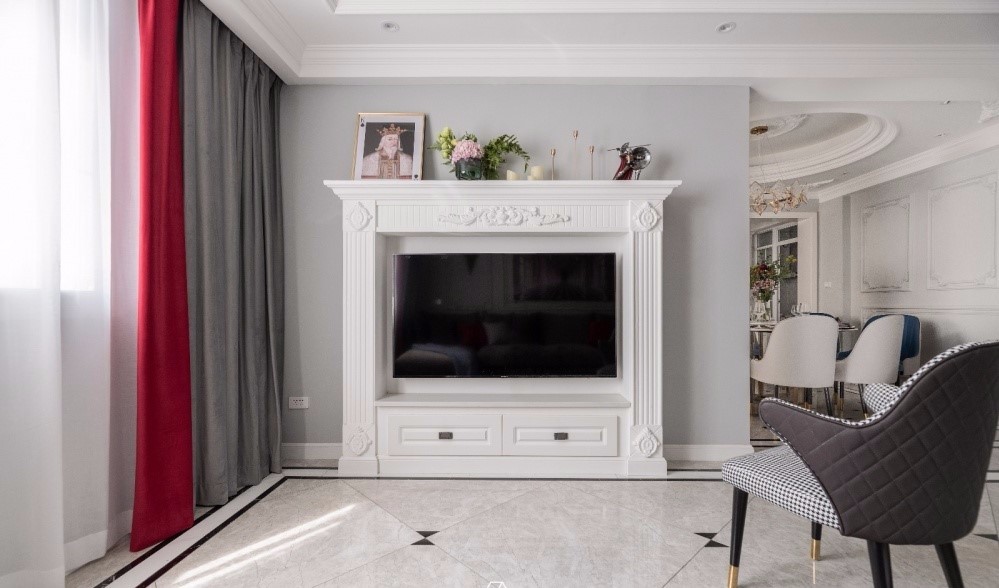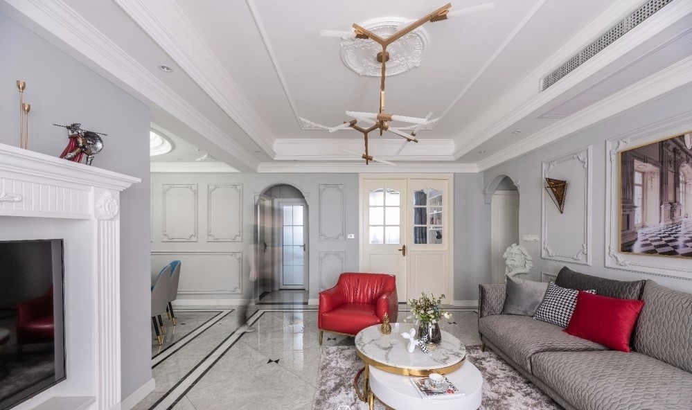 利用極具“庸俗”和“浮夸”的歐式石膏雕花和線條與高級灰的墻面碰撞。